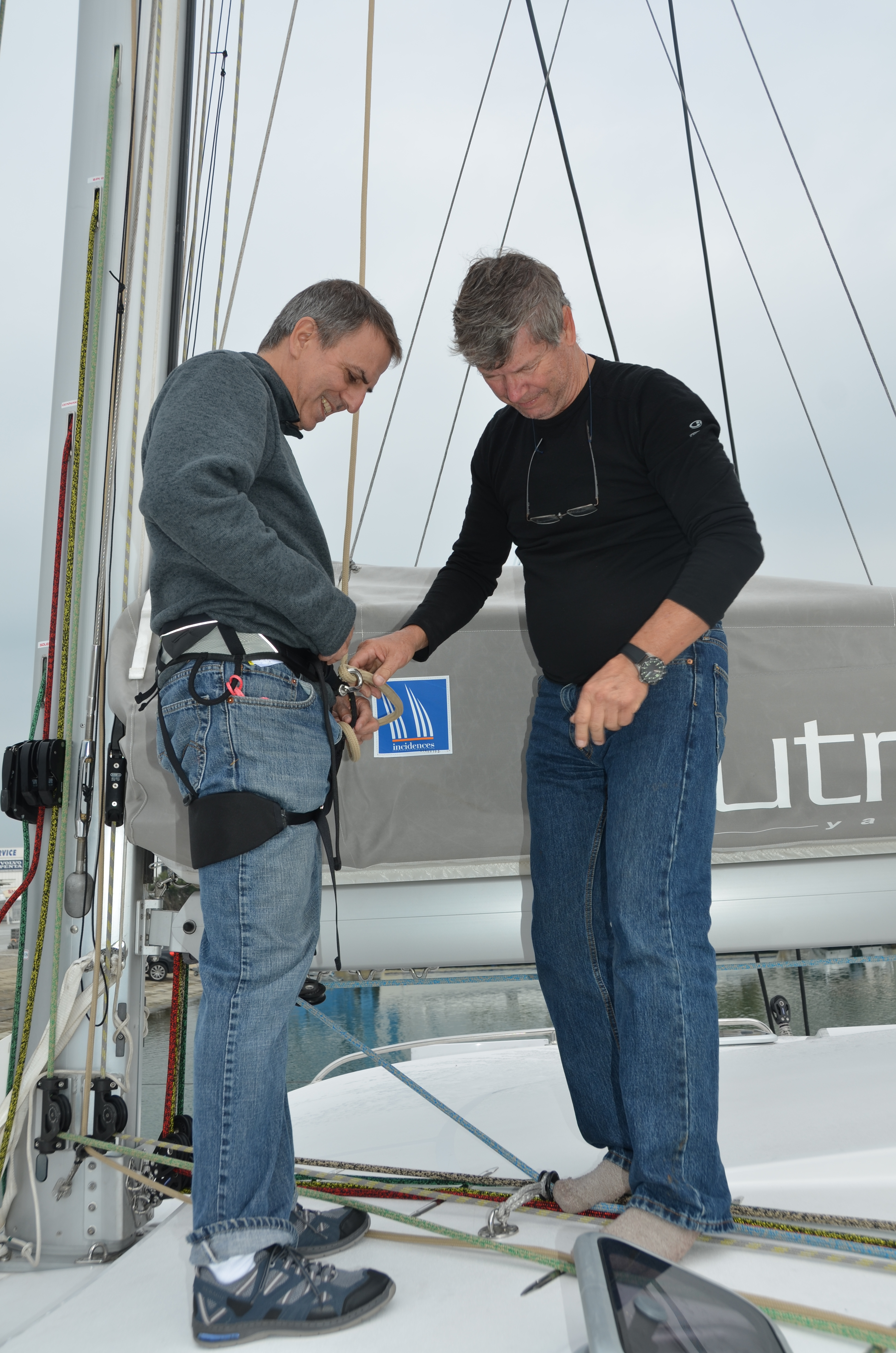 Jan helps me get ready to climb with Spinlock Mast Pro